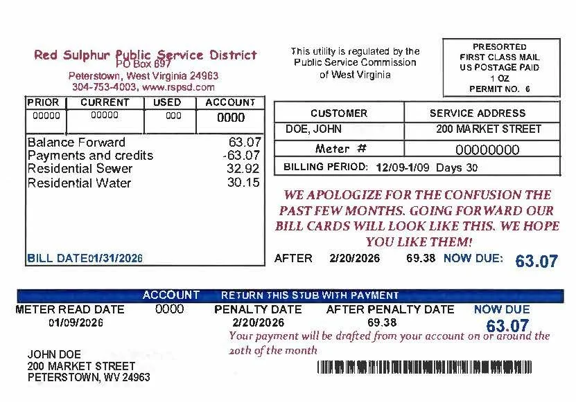 Your Red Sulphur PSD service address. This will also be located on your bill. (See green box on sample) Spelling and punctuation must be exact!